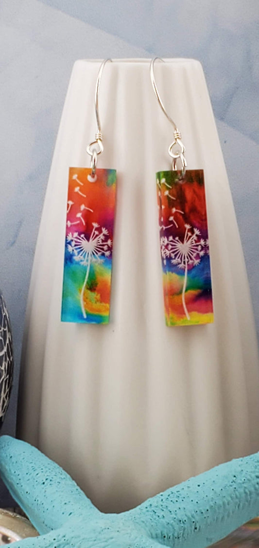 SS Rainbow Dandelion Earrings - Laser cut Lightweight Acrylic earrings - Sterling Silver Hooks