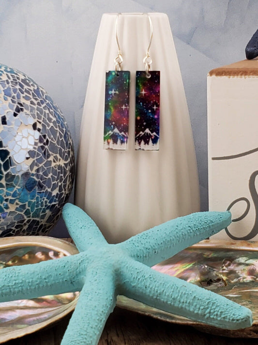 SS Northern Light Mountain Scene - Laser cut Lightweight Acrylic earrings - Sterling Silver Hooks