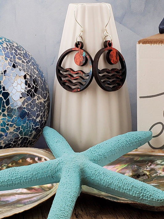 SS Moonlit Vibes - Laser cut Lightweight Wood earrings - Sterling Silver Hooks