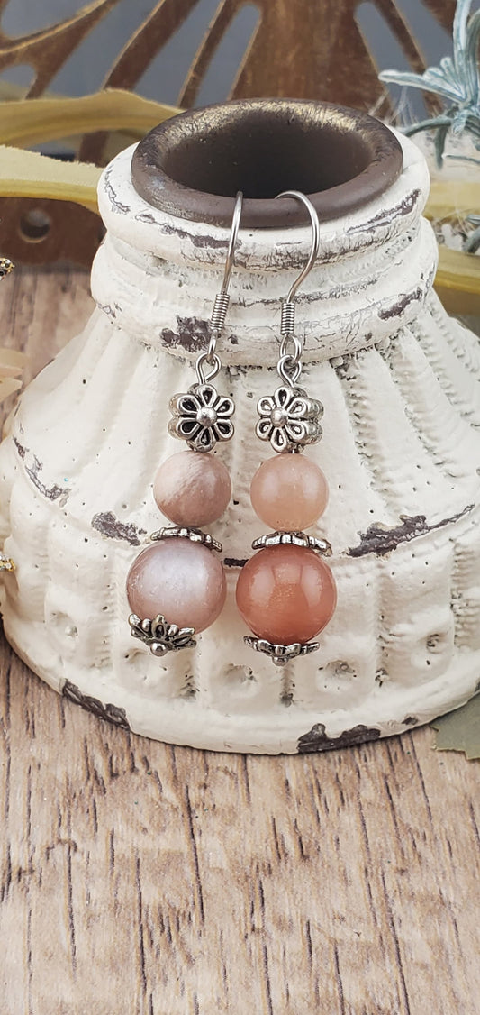 Sunset Blossom Artisan Glass Earrings, Lampwork Glass Bead by Grace Lampwork Beads, Sterling Silver Earring Wire