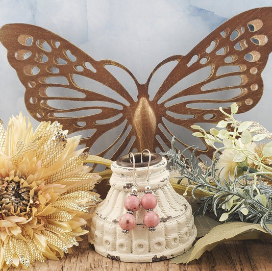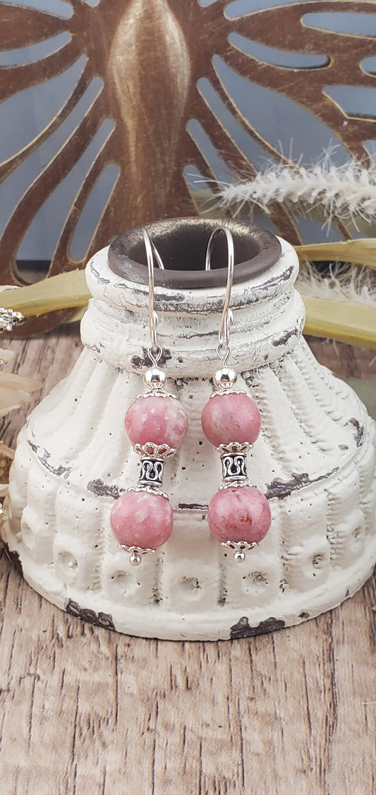 Thulite Banded 10mm Earrings, Silver Filled Earring Wire