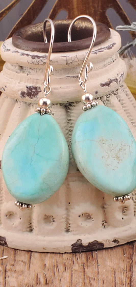 Terra Agate 16x22mm Earrings, Silver Filled Earring Wire