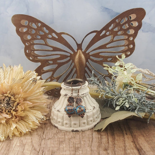 Terra Cotta Blues stunning Artisan Glass Earrings, Lampwork Glass Bead by Grace Lampwork Beads, Copper Earring Wire