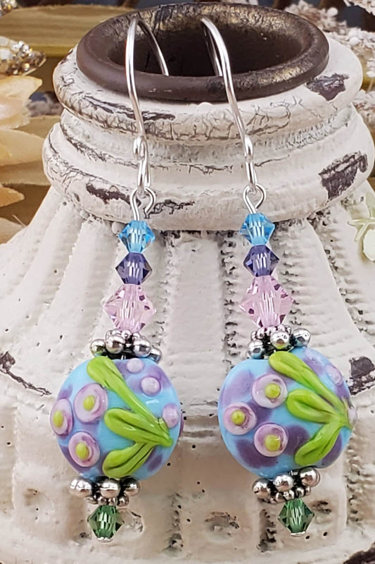 Tiptoe through the Tulips Artisan Glass Earrings, Lampwork Glass Bead handcrafted by a talented artisan, Silver Filled Earring Wire