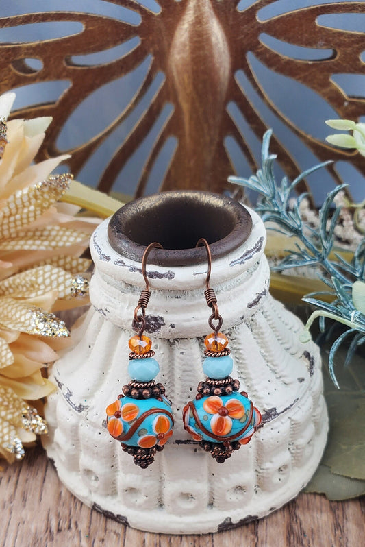 Tropical Bliss Artisan Glass Earrings, Lampwork Glass Bead by Grace Lampwork Beads, Copper Earring Wire