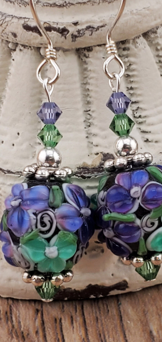 Tranquil Bliss Artisan Glass Earrings, Lampwork Glass Bead handcrafted by an artisan, Sterling Silver Earring Wire