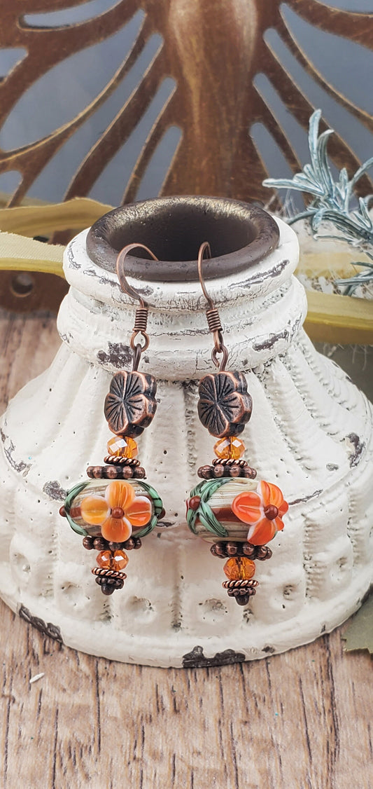 You Had Me at Aloha Artisan Glass Earrings, Lampwork Glass Bead by Grace Lampwork Beads, Copper Earring Wire