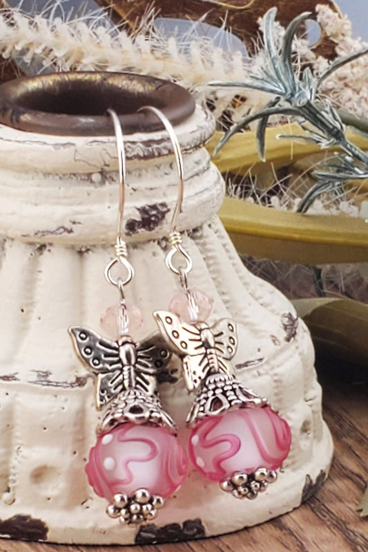 You make my Heart Flutter Artisan Glass Earrings, Lampwork Glass Bead by Grace Lampwork Beads, Sterling Silver Earring Wire