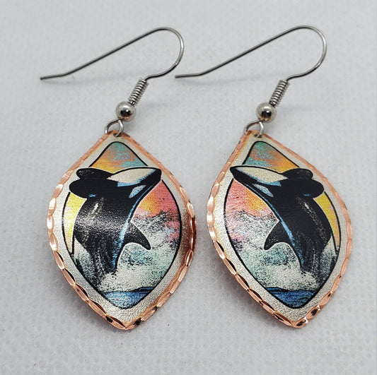 EA-Killer Whale COPPER earrings - Surgical Steel Hypo Allergenic Earwires.