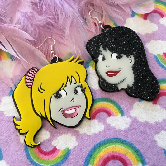 Betty And Veronica Cartoon Earrings, Laser Cut Acrylic, Plastic Jewelry