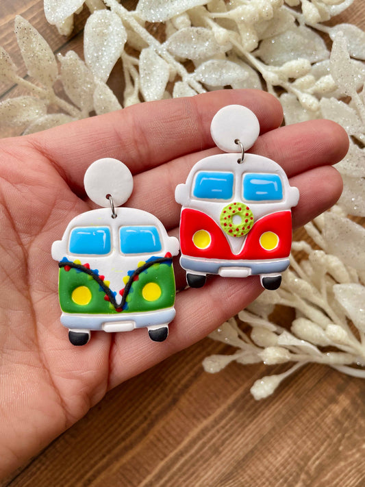 Christmas hippie van handmade polymer clay dangle earrings