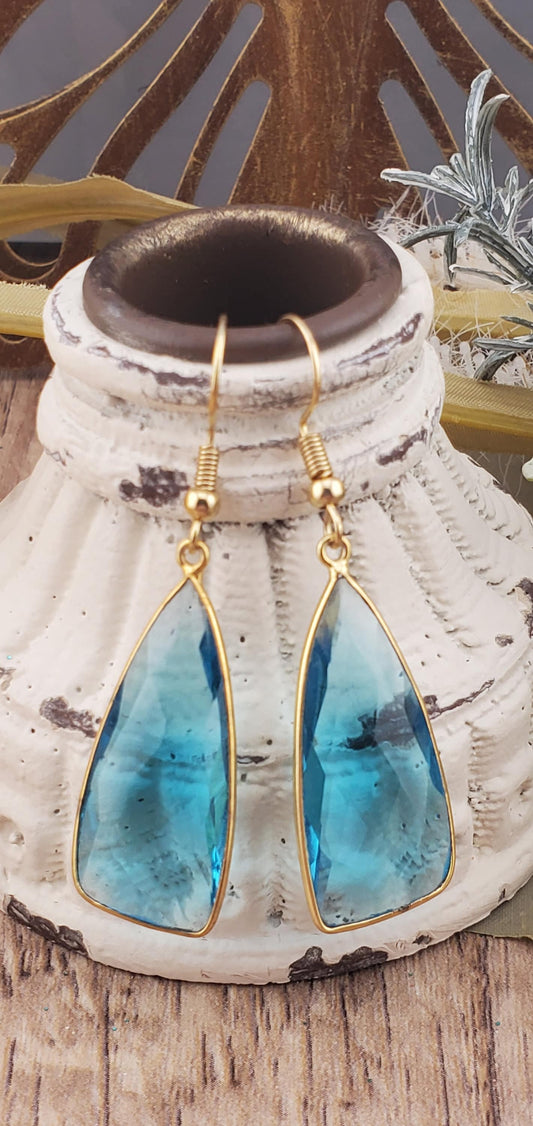 London Blue Quartz 14x34 mm Earrings, Gold Plated Earring Wire