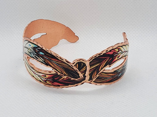 BR - Cut Out Colorful Copper Feather Bracelet - Beautiful adjustable COPPER cuff bracelet.