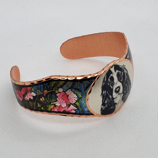 BR - Black/White Cocker Spaniel Bracelet - Beautiful adjustable COPPER cuff bracelet.