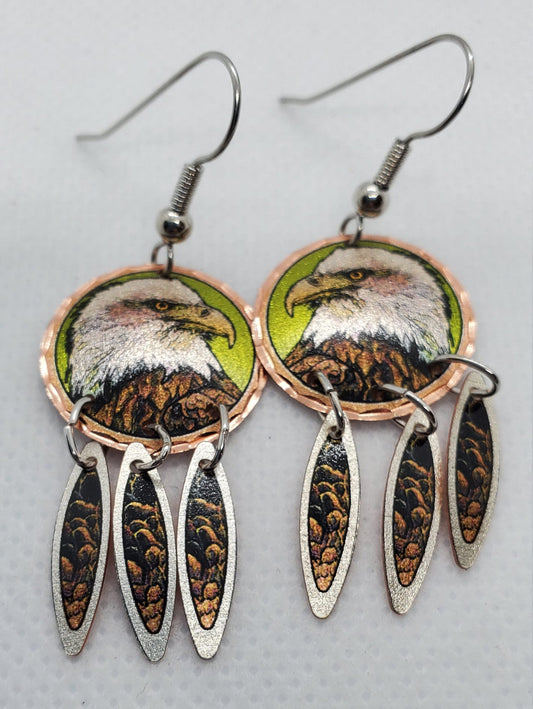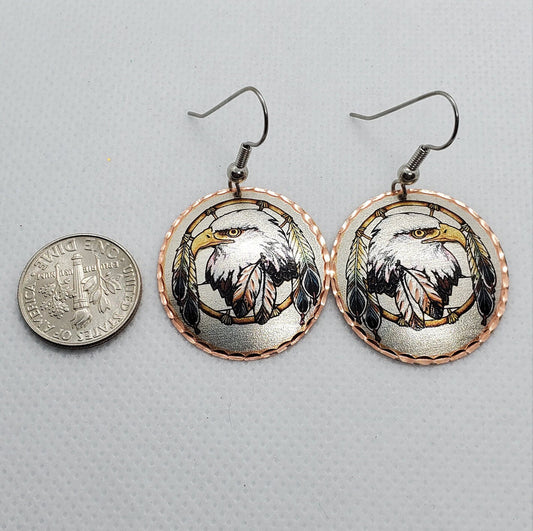EA - Beautiful Bald Eagle COPPER earrings - Surgical Steel Hypo Allergenic Earwires.