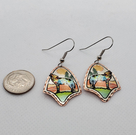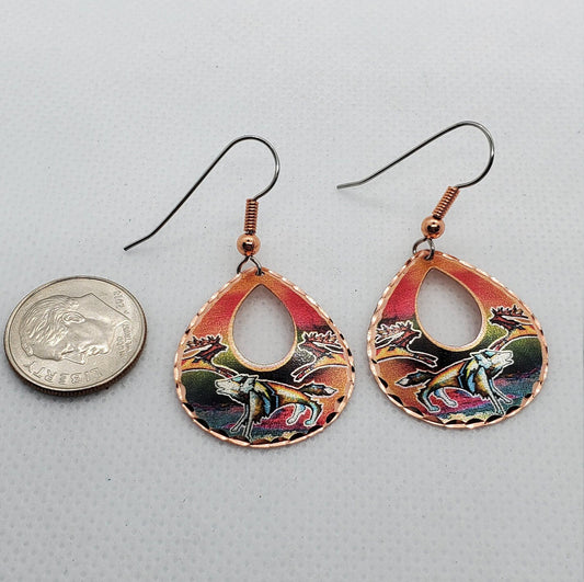 EA- Beautiful Wolf COPPER earrings - Surgical Steel Hypo Allergenic Earwires.