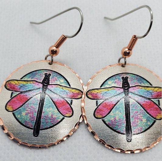 EA - Beautiful Dragonfly COPPER earrings - Surgical Steel Hypo Allergenic Earwires.