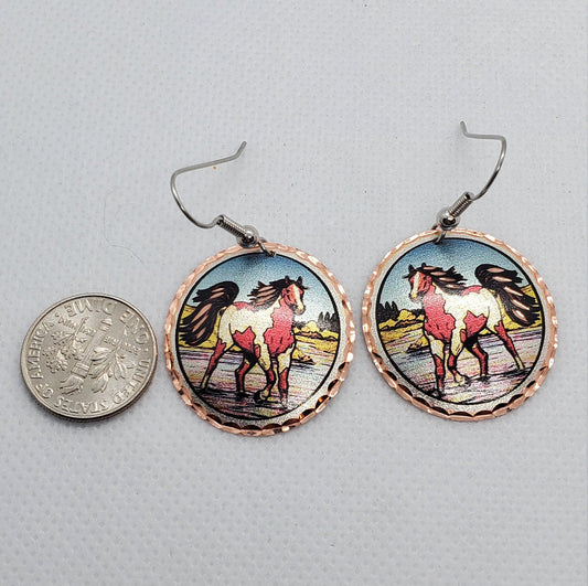 EA- Beautiful Horse COPPER earrings - Surgical Steel Hypo Allergenic Earwires.