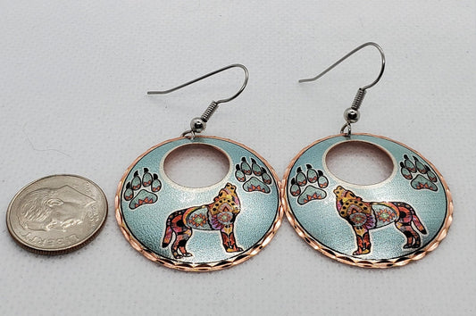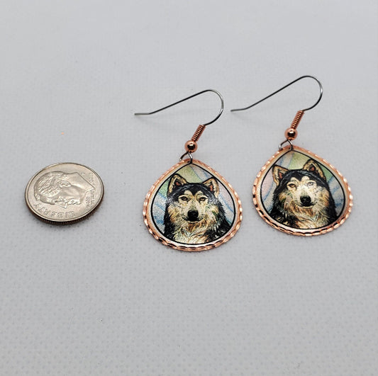EA - Beautiful Wolf COPPER earrings - Surgical Steel Hypo Allergenic Earwires.