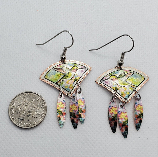 EA - Beautiful Hummingbird COPPER earrings - Surgical Steel Hypo Allergenic Earwires.