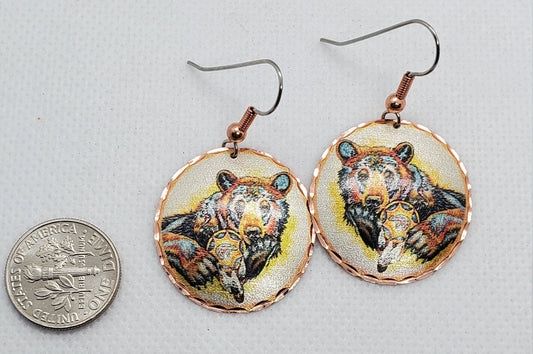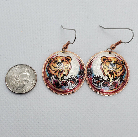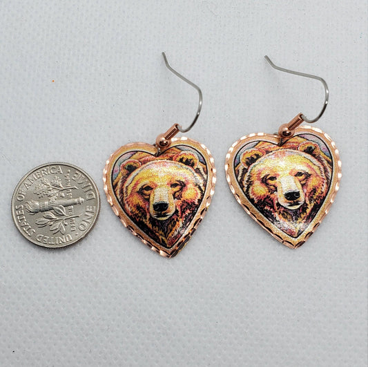 EA - Beautiful Bear COPPER earrings - Surgical Steel Hypo Allergenic Earwires.