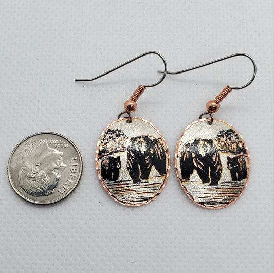 EA - Beautiful Bear with Bear Cub COPPER earrings - Surgical Steel Hypo Allergenic Earwires.