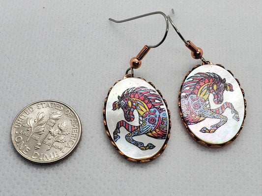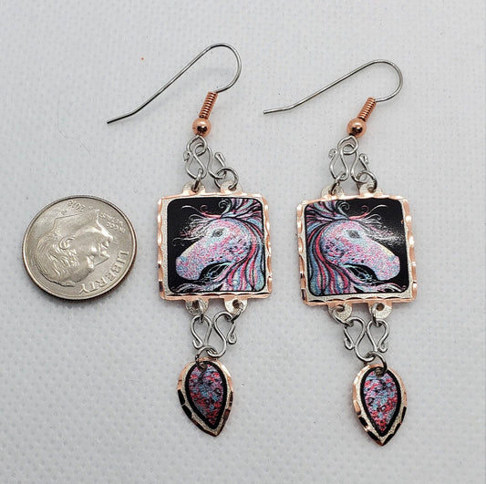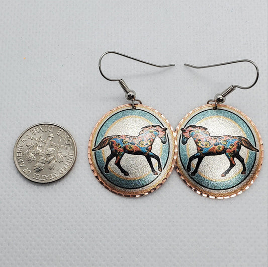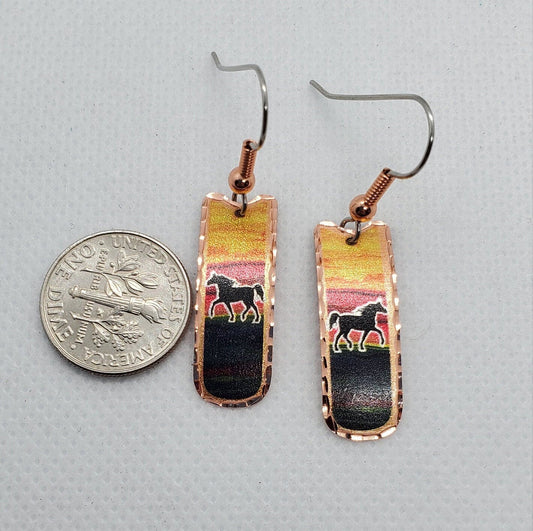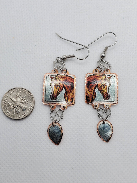 EA - Beautiful Horse COPPER earrings - Surgical Steel Hypo Allergenic Earwires.