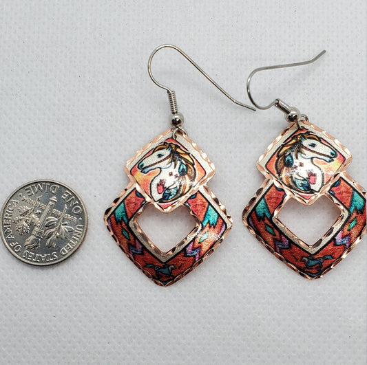 EA - Beautiful Stallion Horse COPPER earrings - Surgical Steel Hypo Allergenic Earwires.