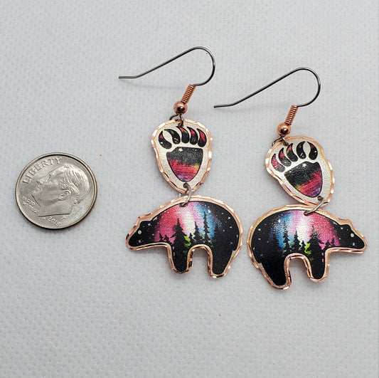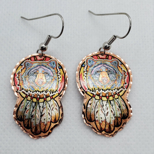 EA - Beautiful Bear COPPER earrings - Surgical Steel Hypo Allergenic Earwires.