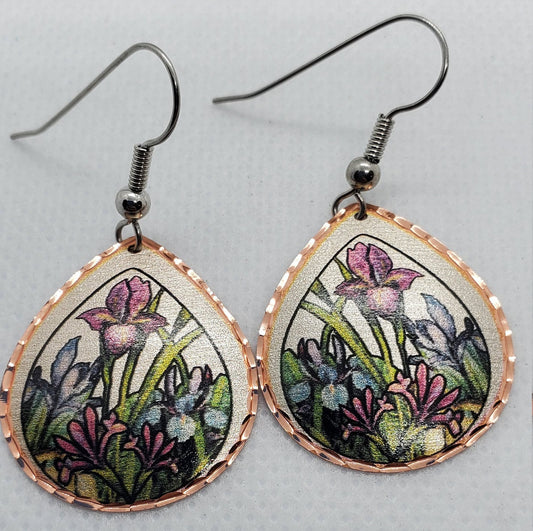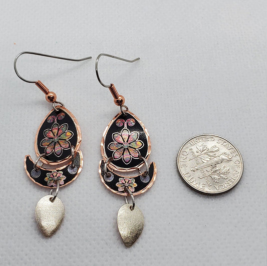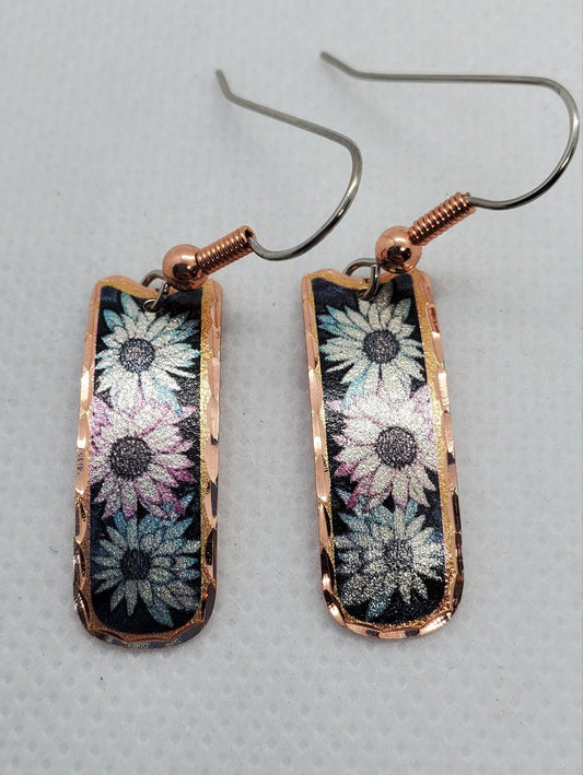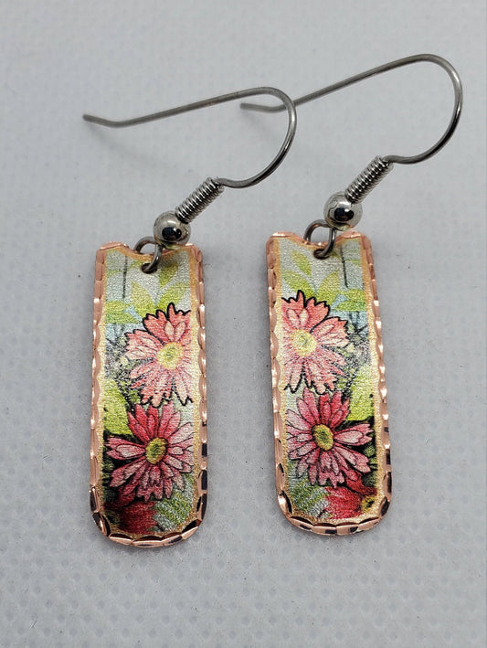 EA - Beautiful Flowers COPPER earrings - Surgical Steel Hypo Allergenic Earwires.