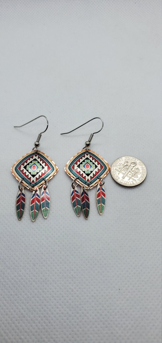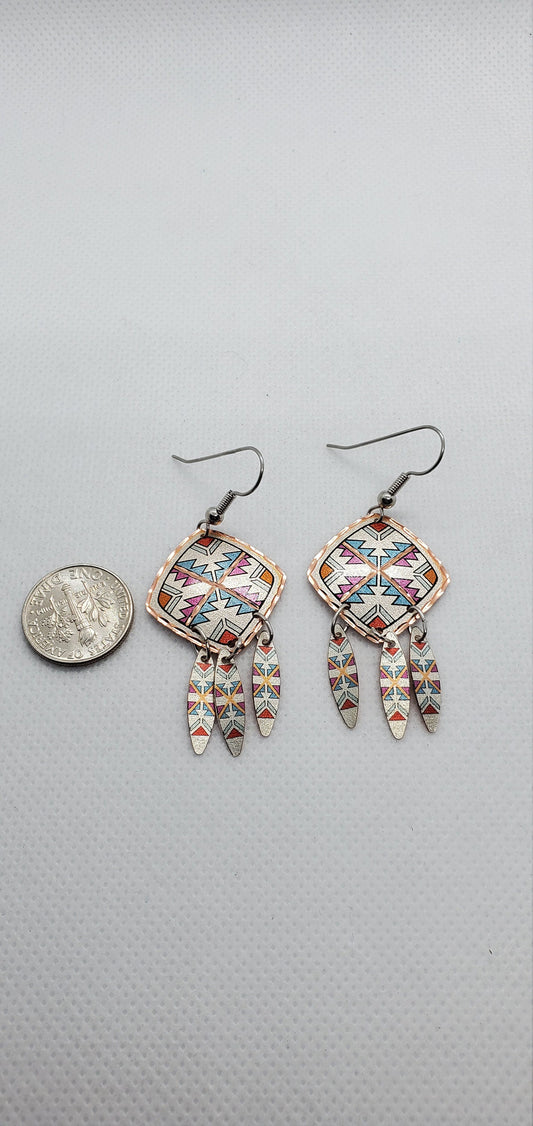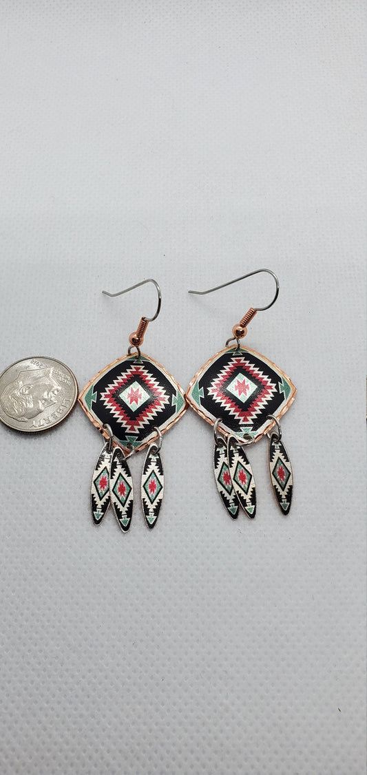 EA - Beautiful Geometric COPPER earrings - Surgical Steel Hypo Allergenic Earwires.
