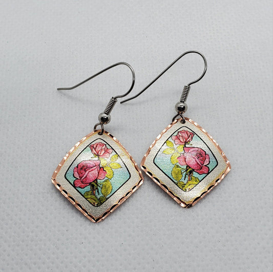 EA - Beautiful Rose COPPER earrings - Surgical Steel Hypo Allergenic Earwires.