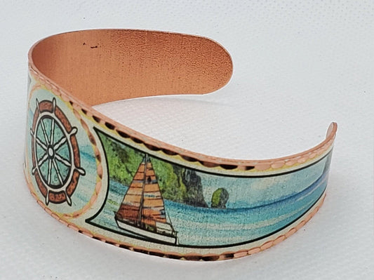 BR - Ship Wheel Jewelry - Beautiful adjustable COPPER cuff bracelet. Ocean/Seashore Jewelry.