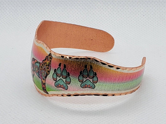 BR - Howling Wolf & Wolf Paws - Beautiful adjustable COPPER cuff bracelet.