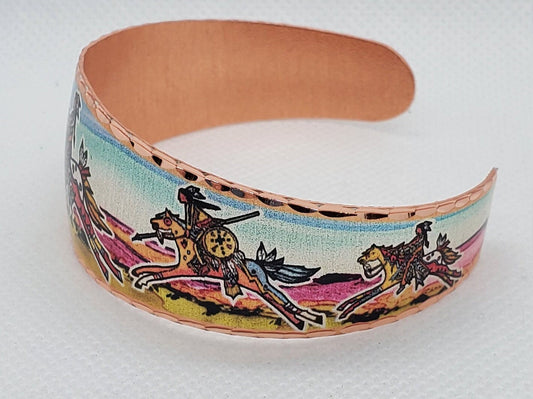 BR - American Indian Inspired Warrior & Buffalo - Beautiful adjustable COPPER cuff bracelet.