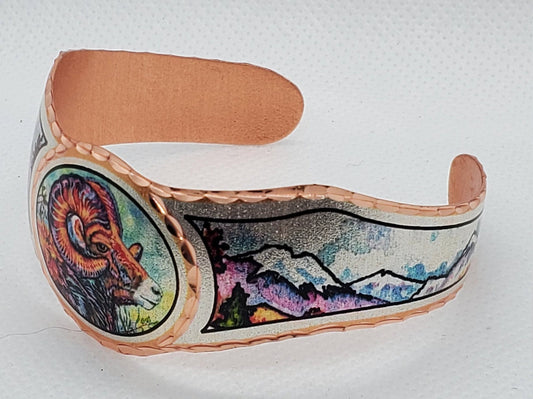 BR - Bighorn Mountain Goat - Beautiful adjustable COPPER cuff bracelet.