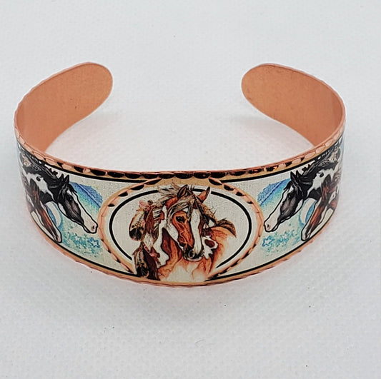 BR - Colorful Handmade Horse Cuff Bracelet - Beautiful adjustable COPPER cuff bracelet.