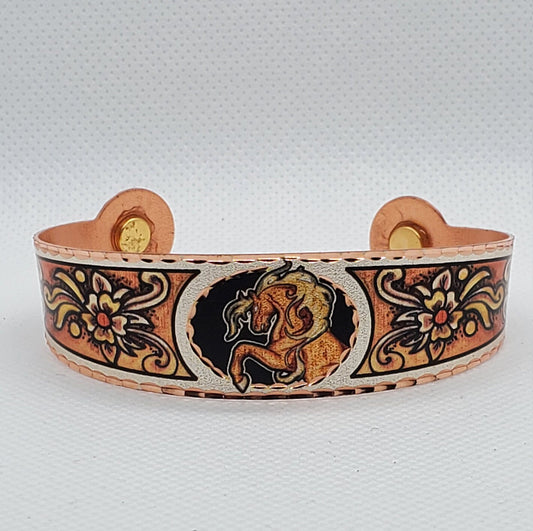 BR - Western Horse Magnetic Bracelet - Beautiful adjustable COPPER cuff bracelet.