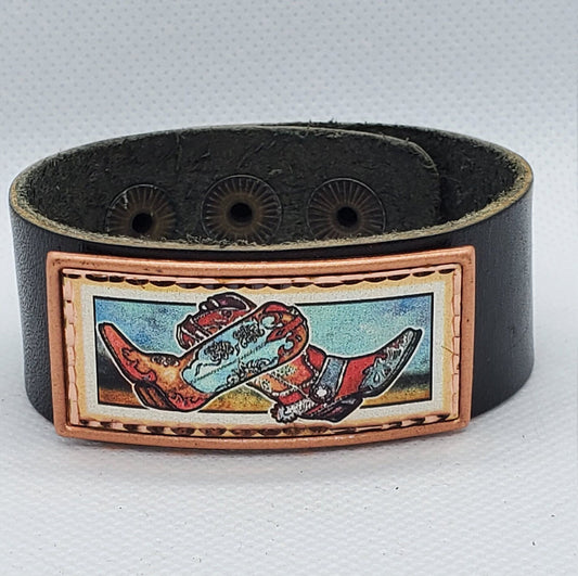 B - Cowboy Boots - Beautiful adjustable COPPER leather bracelet.