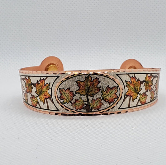 BR - Maple Leaves Magnetic Bracelet - Beautiful adjustable COPPER cuff bracelet.