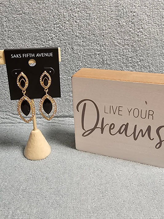 Elegant Black Stone Drop Earrings by Saks Fifth Avenue