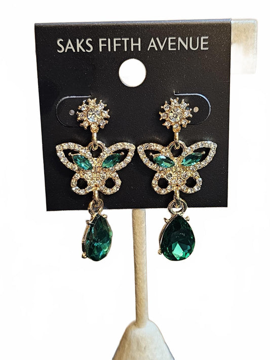 Saks Fifth Avenue Butterfly Earrings with Green Accents