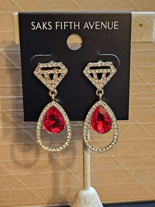 Saks Fifth Avenue Red Teardrop Earrings with Diamond Accents