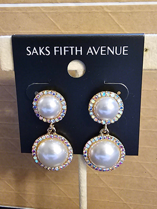 Elegant Saks Fifth Avenue Pearl Drop Earrings