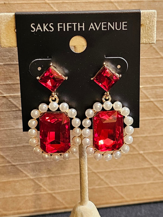 Saks Fifth Avenue Red & Pearl Statement Earrings