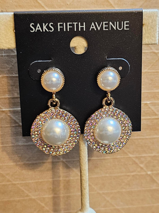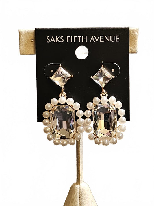 Saks Fifth Avenue Elegant Pearl and Crystal Earrings