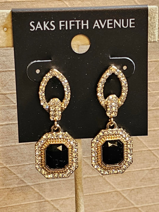 Saks Fifth Avenue Elegant Black & Gold Earrings