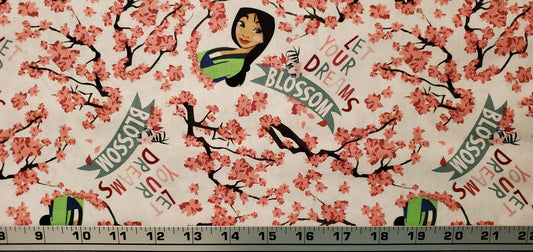 Disney PRINCESS MULAN Dreams Blossom Fabric by the half yard. 100% Cotton.