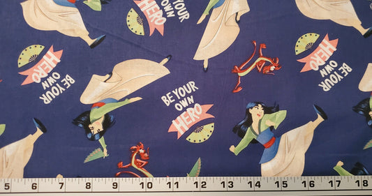 Disney MULAN Be your own hero - MUSHO Fabric by the half yard. 100% Cotton.