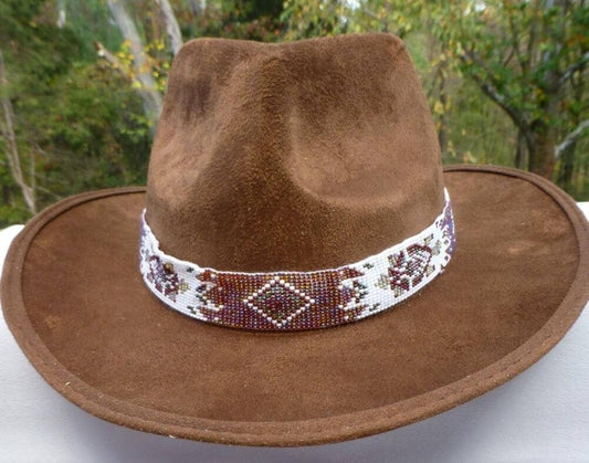 Brown White Seed Beaded Cowboy Turtle Unisex Handmade Hatband
